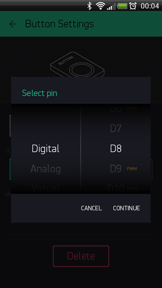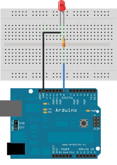 Самый важный параметр, который нужно установить, — это PIN . Список контактов отражает физические контакты, определенные вашим оборудованием. Если ваш светодиод подключен к цифровому контакту 8 – тогда выберите D8 ( D – означает цифровой ).